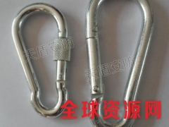 安全钩,也叫“主锁”,分普通式(旋转式)和弹簧钩(自锁式)两种。外形多如“D”(救援、军事)、“8”字形(工程、建筑)。