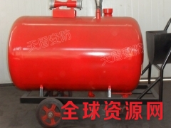 泡沫灭火设备移动式泡沫罐(泡沫比例混合装置),由消防、推车、常压泡沫罐、负压比例混合器、喷射设备(泡沫发生器)、水龙带、安全阀、控制阀门及一些辅助零部件等组成。容积50500L,流量48L/S)。