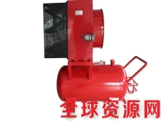 用消防车、消防艇或专用水泵供给 0.3~1.0MPa 的压力水,一部分经主管道直接进入水 轮机,驱动水轮旋转,并通过水轮机轴带动风轮转动。另一部分水流经比例混合器,在喷嘴处 流速急剧增大,使真空室形成真空,储罐内的高倍数泡沫液由吸液管吸入比例混合器的真空 室,并与从喷嘴射出来的水混合,一起进入管道,再与从水轮机流出的水第二次混合,经管 网通过喷头把泡沫混合液以雾状形式喷向发泡网,在网的内表面形成一层薄膜,由风轮吹到 网上的风,吹胀成大量的气泡,构成为高倍数泡沫,淹没或覆盖燃烧物体的表面。阻断吸热 辐射,冷却降温,隔绝稀释空气,覆盖窒息灭火。